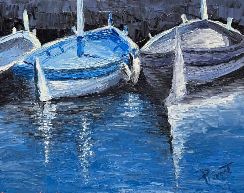Mes premières toiles présentées dans la galerie photos sont issues de mes formations avec l’Académie de M. René Milone, artiste peintre.
